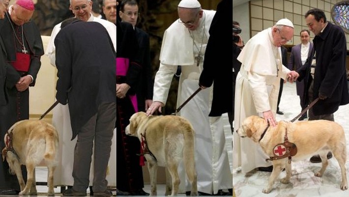 “Han trabajado mucho, ¿no?”, dijo el Papa, que en el transcurso del encuentro acarició un perro y recibió un mate de regalo, para romper el hielo ante los periodista congregados en la moderna Sala Pablo VI del Vaticano.