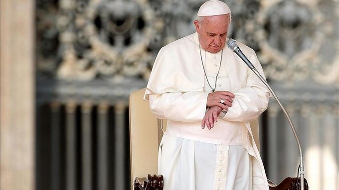 “El señor os recompense por vuestra fidelidad y os dé valor en la lucha contra las fuerzas del maligno y abra los ojos a los que el mal ha dejado ciegos para que vean la luz de la verdad y se arrepientan de los errores cometidos”, invocó el papa tras el resumen de la catequesis en árabe.