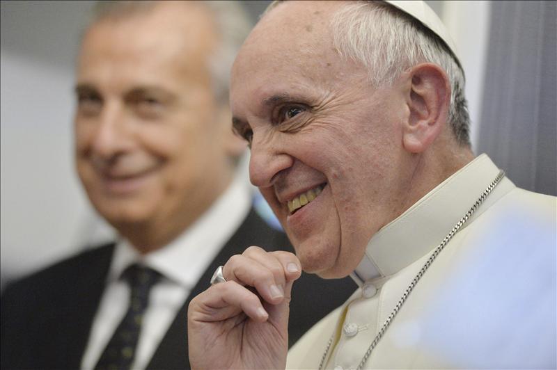 El papa Francisco da una rueda de prensa a bordo del avión que le trasladó a Italia tras abandonar Río de Janeiro (Brasil),