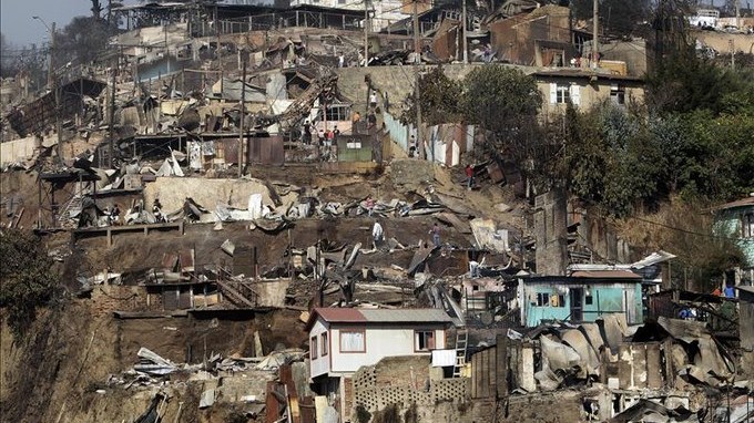 “Tal vez sea el peor incendio en la historia de Valparaíso”, dijo a los periodistas Bachelet, quien no descartó que las cifras de víctimas y daños puedan aumentar a medida que avanza la remoción de escombros y se hace el catastro de las casas destruidas.