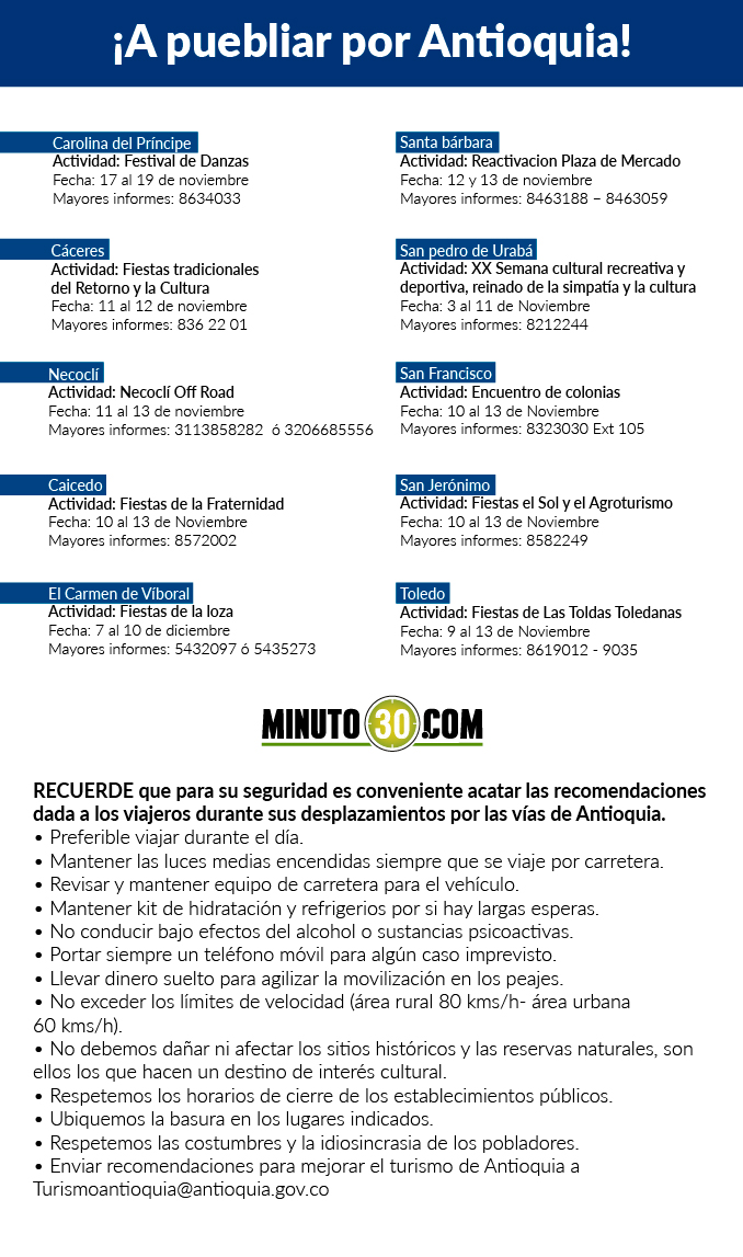Este puente festivo puedes disfrutar las maravillas de Antioquia, para que tengas una idea más clara de los sitios para recorrer te recomendamos los que estarán de festividades.