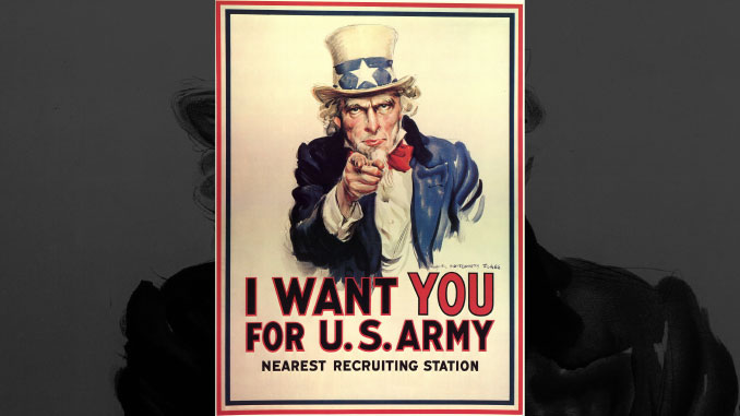 El patriota de perilla y pelo blanco, mirada penetrante, trajeado con los colores de la bandera estadounidense y con sombrero de copa alto adornado con las estrellas representativas de los estados del país apuntaba por primera vez hace un siglo, con su dedo índice, a los jóvenes para que se unieran al esfuerzo del país en la guerra.
