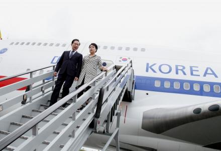 Bogotá, (Jun. 23 / 12). El presidente Lee Myung-Bak llegó a Bogotá en compañía de su esposa, Kim Yoonok. Foto: Felipe Pinzón – OP. Cancillería