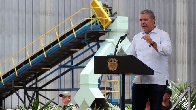 El presidente colombiano, Iván Duque, llegó hoy a Tibú, en el Catatumbo para inaugurar una planta extractora de aceite de palma y buscar soluciones a los problemas de orden pública de la zona.