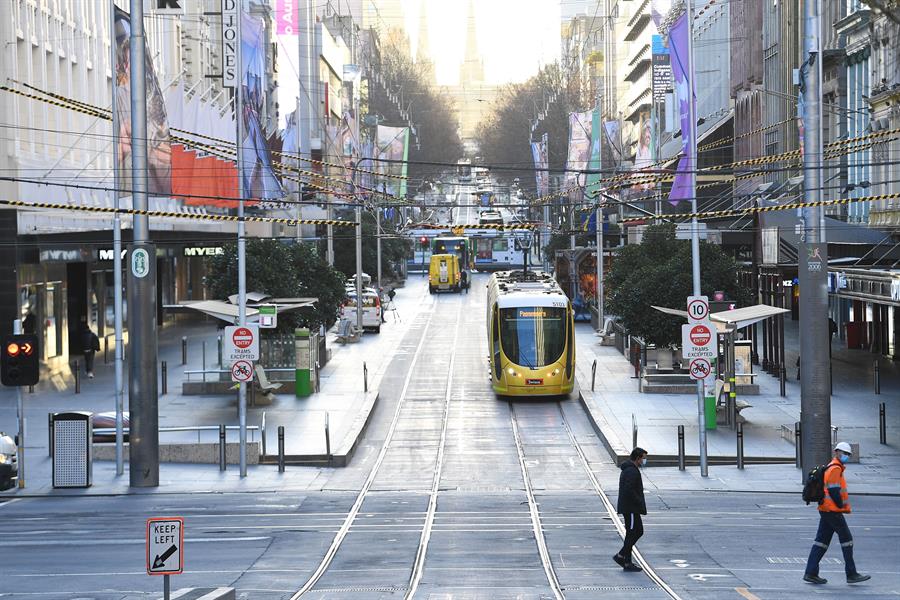 Melbourne, la capital del estado de Victoria y con cinco millones de habitantes, fue reconfinada el 9 de julio por seis semanas para intentar controlar el brote de la COVID-19, que se atribuye a fallos de seguridad en la cuarentena de los viajeros internacionales.