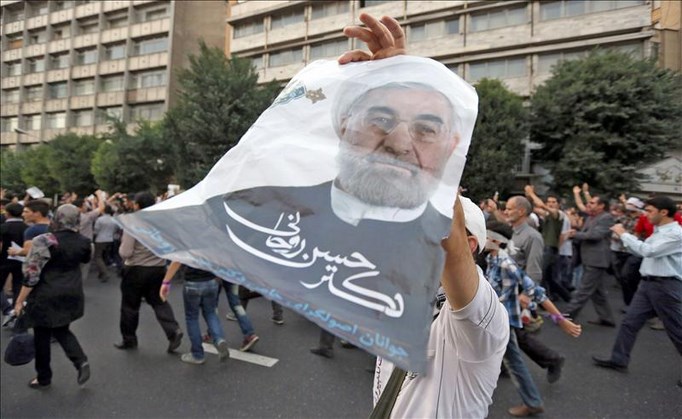Rohani y otros conocidos reformistas, como la hija del ex presidente Akbar Hashemi Rafsanyani, Fatemeh Hashemi, se reunieron para celebrar la victoria del nuevo presidente electo, mientras sus seguidores acudieron a la calle Karim Jan, en el centro, frente a su cuartel de campaña, para repartir flores y dulces.