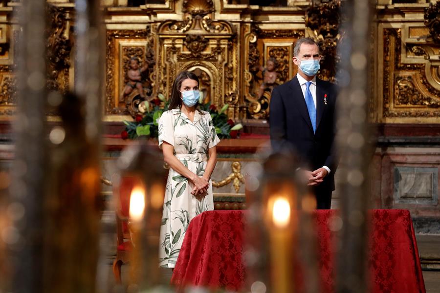 Felipe VI, junto a la reina Letizia, presidió la tradicional ofrenda al apóstol Santiago en la iglesia de San Martiño Pinario, en su visita a la capital de la región de Galicia con motivo de la celebración del patrón de España.