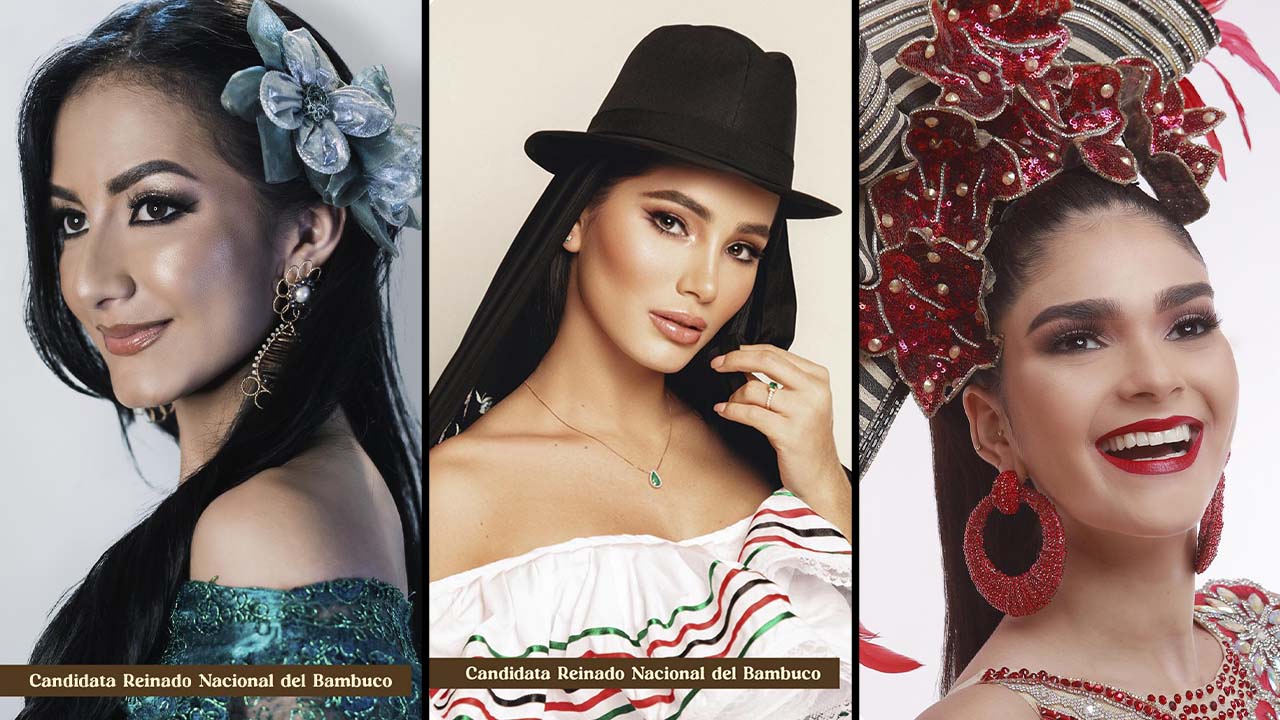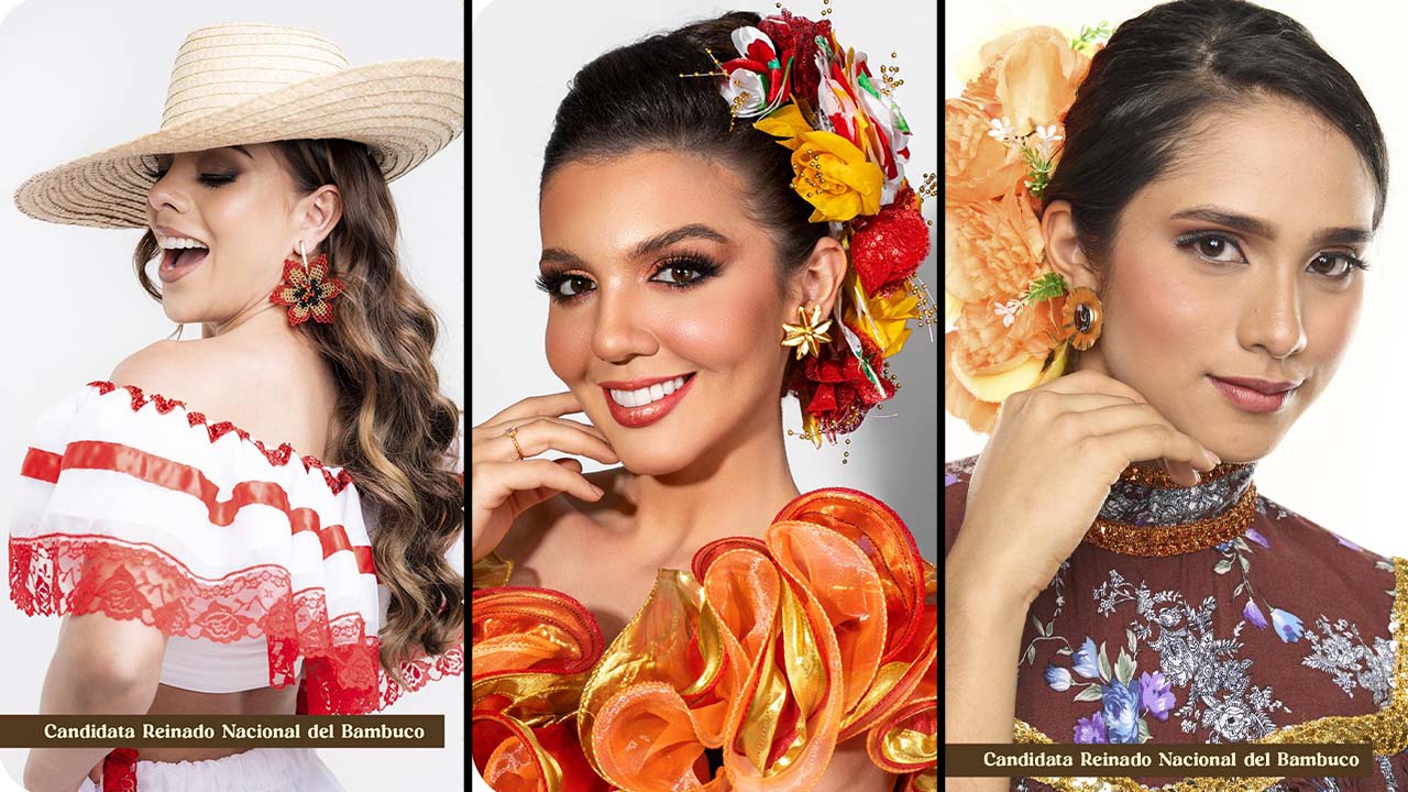 Ellas son Ana Belén Tróchez (Cauca) ,Valentina Isabel Mantilla (Arauca) y María Camila León (Antioquia) candidatas el Reinado Nacional del Bambuco 2023