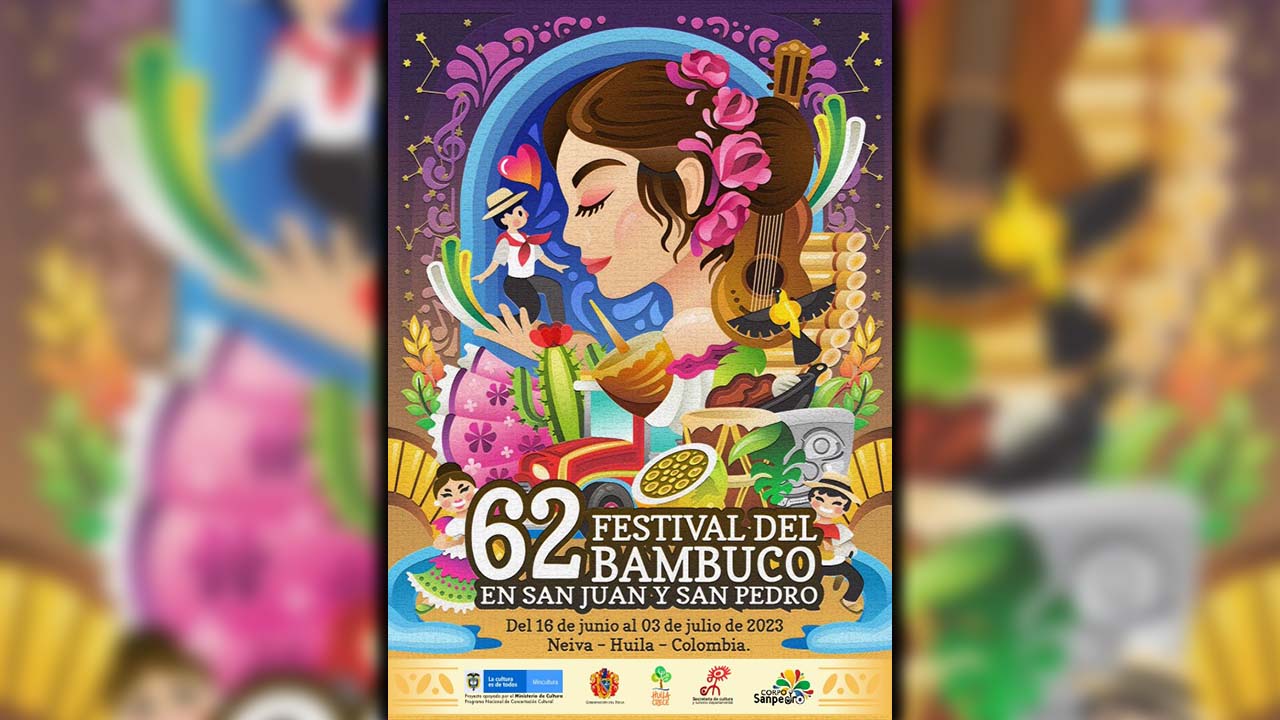 Afiche del Reinado y Festival Nacional del Bambuco 2023 “Péguese la Rodadita”.