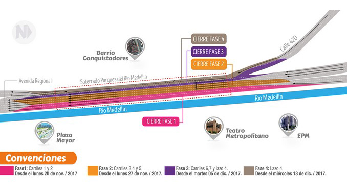 Minuto30.com-. La Alcaldía de Medellín anunció que realizará obras de mantenimiento del soterrado de Parques del Río con el fin de garantizar la seguridad de los conductores que circulan por esta zona, para lo cual es necesario hacer cierres viales parciales que no afectarán la totalidad del soterrado, ya que se mantendrán abiertos cuatro carriles de manera general.
