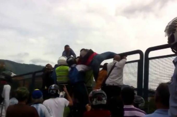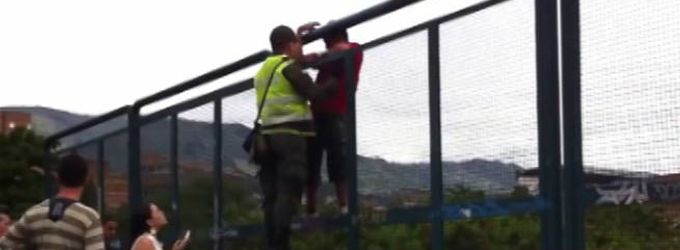 El uniformado se ganó la confianza del inestable ciudadano y subió también a la malla, para tratar de convencerlo de no cometer un acto que terminaría en tragedia.