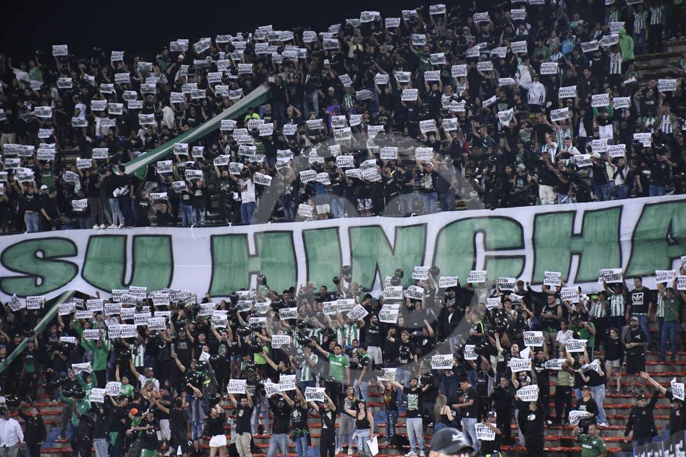 La hinchada de Atlético Nacional protestó durante todo el equipo contra las directivas del verde. / Foto: Minuto 30