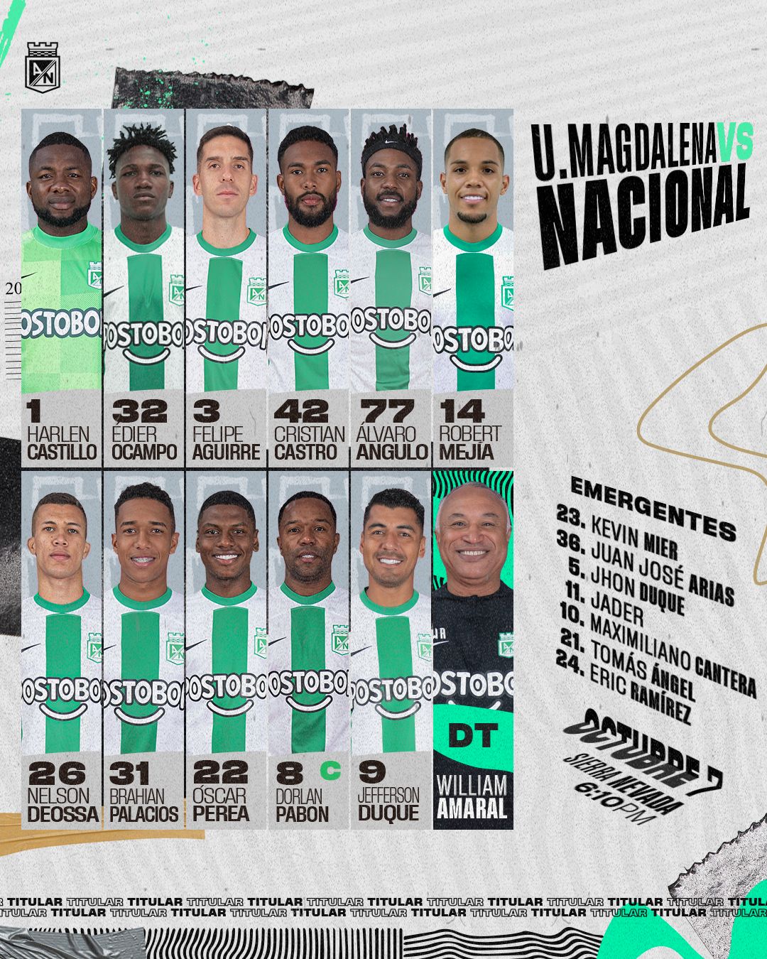 Así mismo, el verde paisa formará con Nelson Deossa, Brahian Palacios, Óscar Perea, Dorlan Pabón y Jefferson Duque.