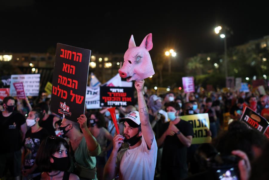 Kisch criticó duramente la protesta, en la que una multitud abarrotó la simbólica plaza Rabin, en muchos casos sin respetar la distancia de seguridad de dos metros, cuando el país sufre una segunda oleada de la pandemia en la que ha doblado las cifras de infección de la primera, en marzo.