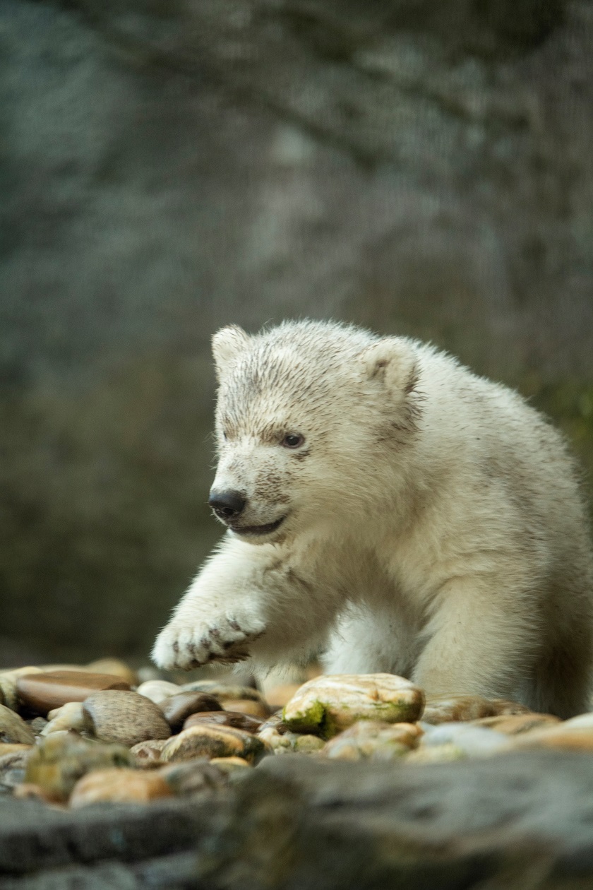 Los osos polares nacen con un peso de apenas medio kilo, y no pueden ver ni oír. El animal, que ahora pesa unos doce kilos, dio sus primeros pasos cuando tenía diez semanas.