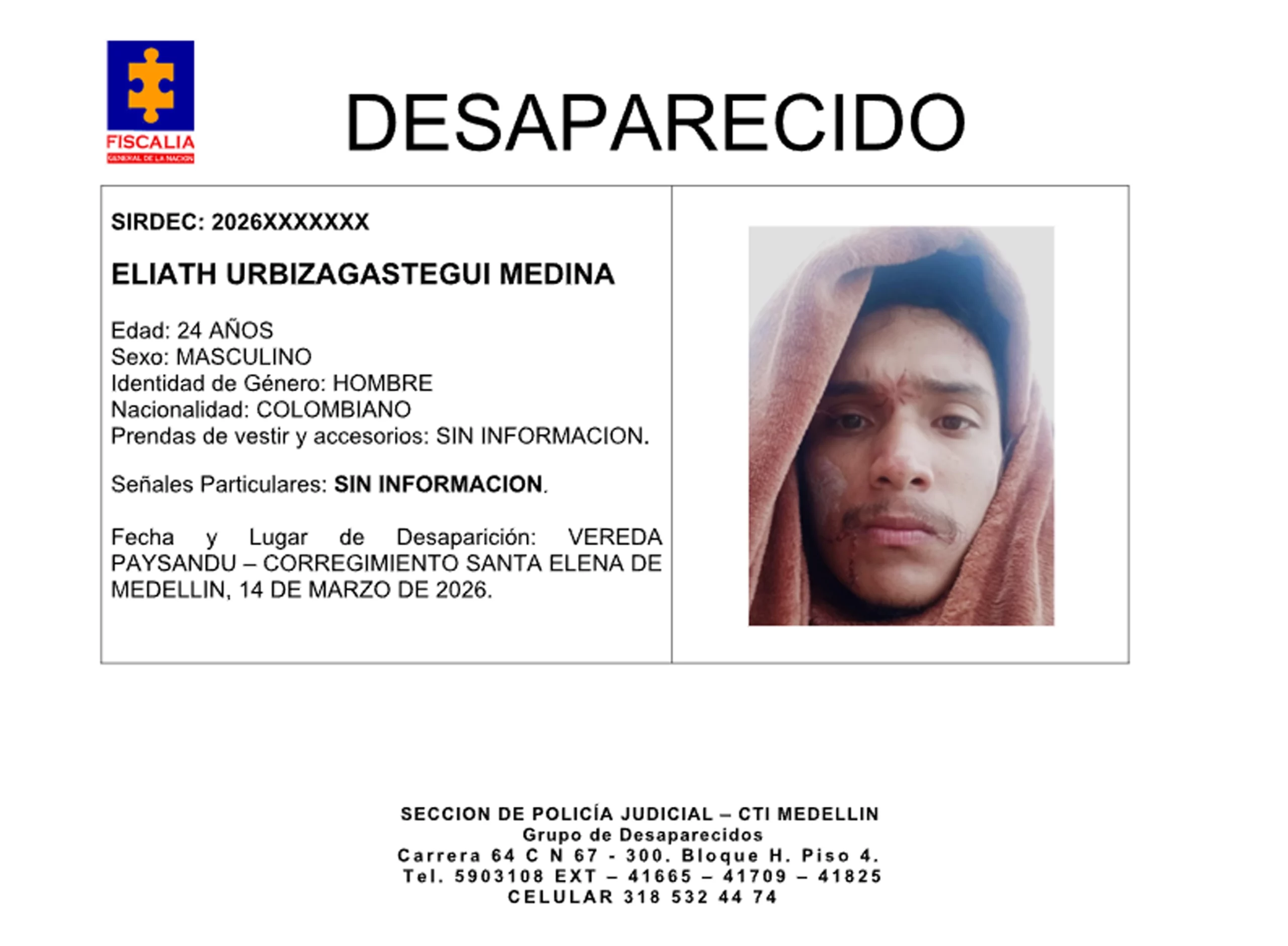 El caso se sitúa en la vereda Paysandú, ubicada en el corregimiento de Santa Elena, en la ciudad de Medellín. La fecha en la que se le vio por última vez fue el 14 de marzo de 2026, lo que ha generado preocupación entre sus familiares y la comunidad, debido a la falta de información concreta sobre su paradero.
