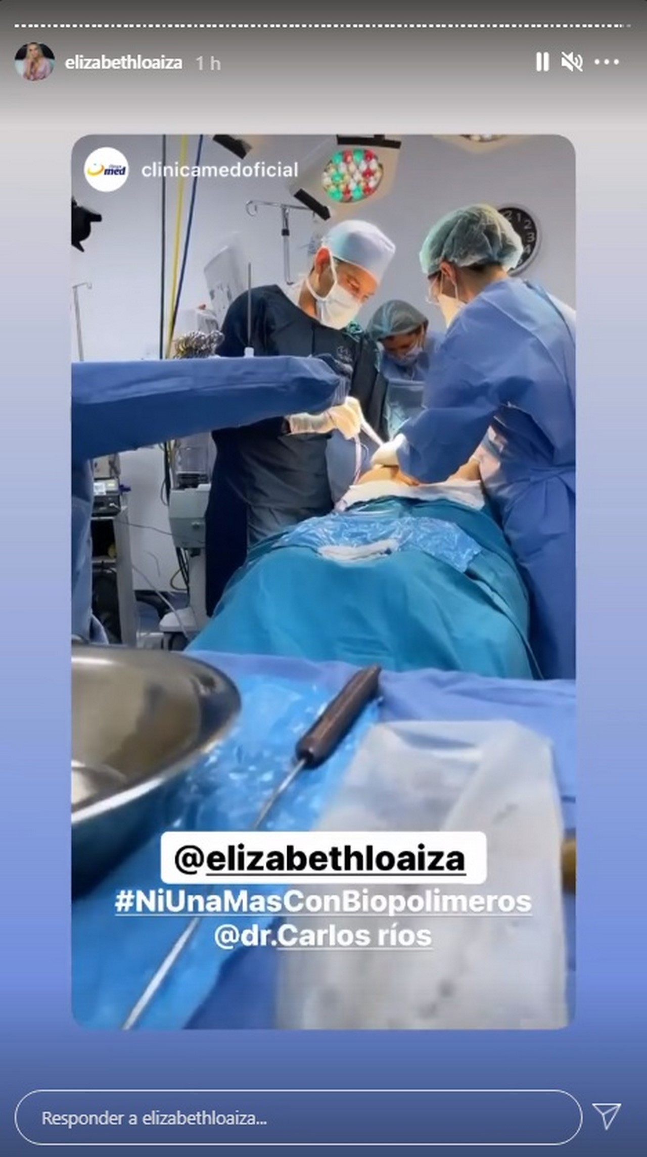 Elizabeth Loaiza habría ingresado a cirugía en la mañana de este jueves 26 de agosto, de acuerdo con sus publicaciones, el encargado del procedimiento será el doctor Carlos Alberto Ríos.