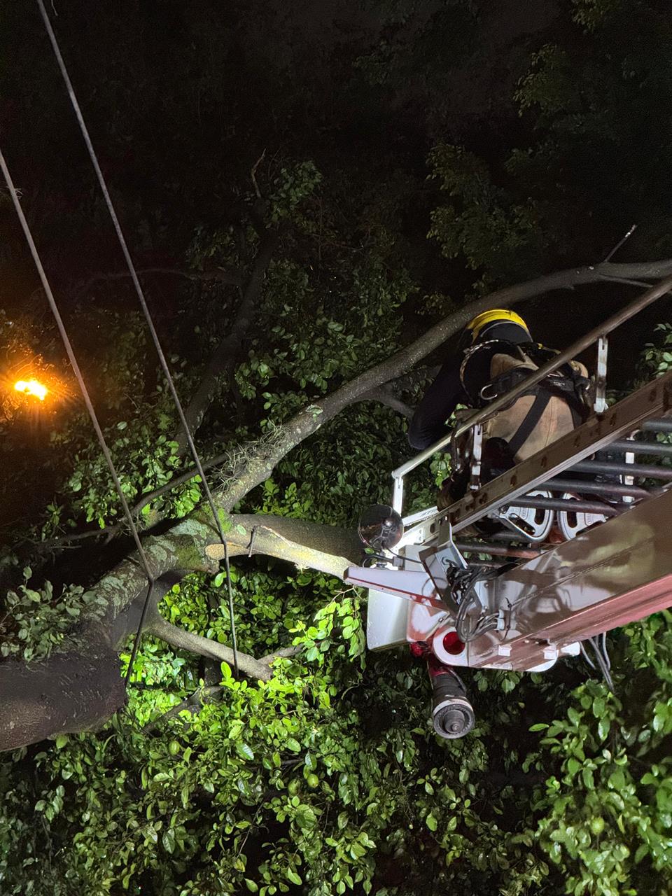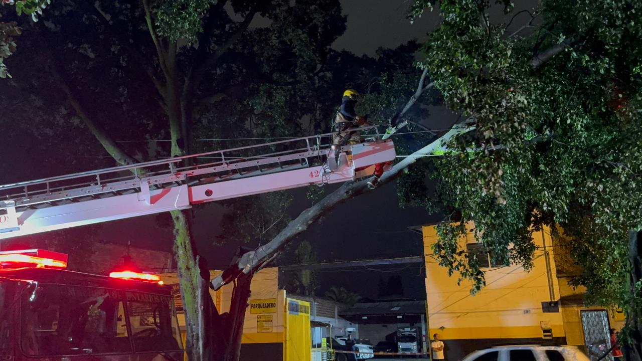 Una de las ramas del árbol quedó suspendida de las líneas de energía, por lo que se dio aviso a la entidad competente para que atendiera le emergencia y se evitaran complicaciones mayores en el sector.