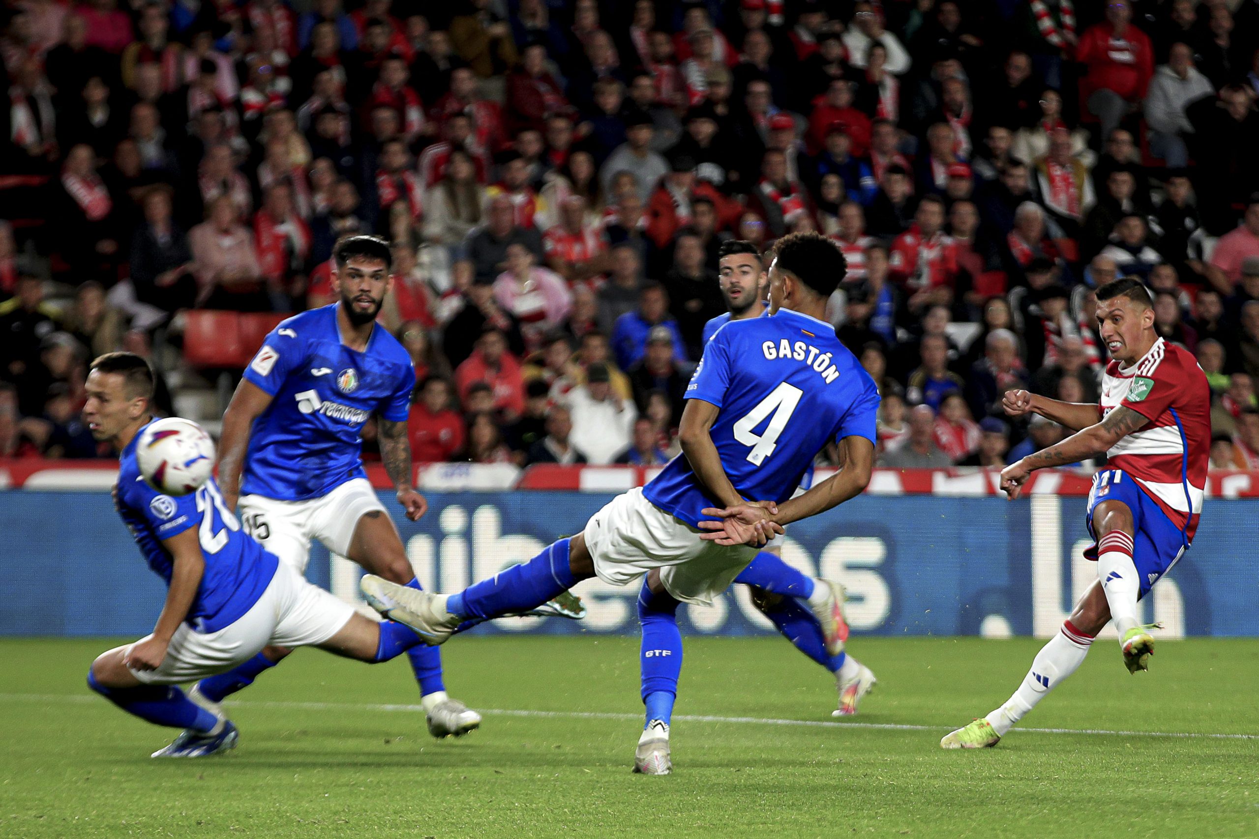 Un gol de Borja Mayoral al rematar a placer en la primera jugada del partido tras una gran acción individual del inglés Mason Greenwood adelantó a los getafenses, mientras que el Granada empató en el cuarto minuto del añadido con una diana de Gonzalo Villar, el mejor del primer tiempo, tras asistencia de Carlos Neva.