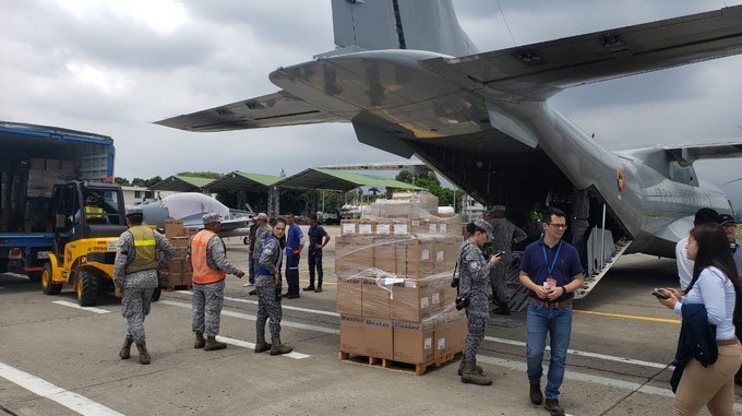 El transporte de estos insumos se hizo en un avión Hércules C-130 en el cumplimiento de las instrucciones del presidente de la República, Iván Duque, con el apoyo de la Fuerza Aérea Colombiana.