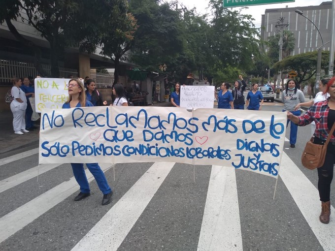 Este lunes 14 de enero, empleados de la Clínica León XIII hicieron un plantón a las afueras de la institución exigiendo el pago oportuno de su salario, que según ellos no reciben completo desde noviembre de 2018, además denuncian sobrecarga.
