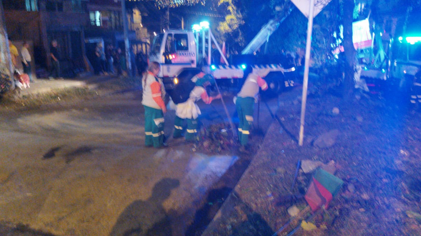 En horas de la noche del pasado viernes 10 de enero, trabajadores de llegaron hasta la carrera 75 con la calle 104 del barrio de Medellín, para limpiar todo el desastre que dejó el accidente de tránsito que se presentó horas más temprano.