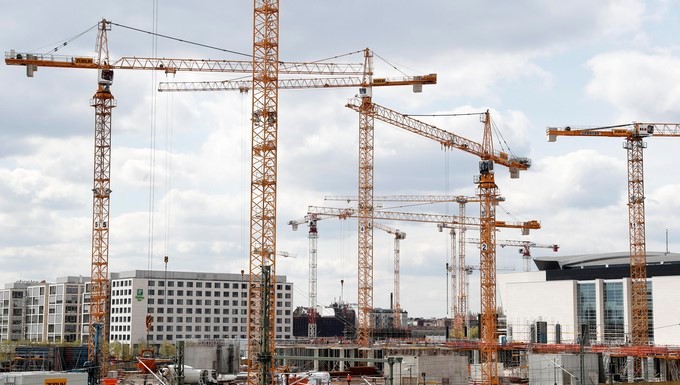 Vista de varias grúas en una zona de construcción en Berlin