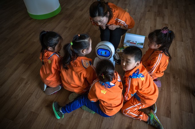 Un ejemplo de los nuevos roles de estos humanoides se puede encontrar en una de las mayores guarderías del país, llamada “Jardín Dorado” y situada a medio camino entre Pekín y Tianjin, donde tres robots blancos y de silueta curva, para que parezcan inofensivos a los niños, son los protagonistas de la clase.