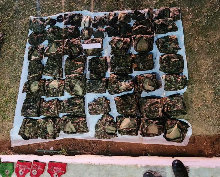 Adicionalmente, fueron incautadas prendas de tipo militar como 15 pantalones pixelados, 22 guerreras, 15 camibusos, 17 cintelas; 18 equipos de campaña, 2 bolsos de asalto, pañoletas, reatas y pavas.