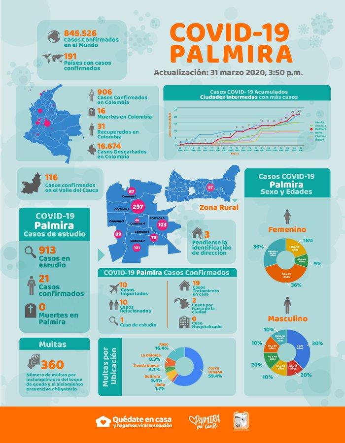 Así es la situación del COVID-19 en Palmira al día de hoy. Hago un llamado a compartir la información oficial y a no reenviar noticias sin confirmar su veracidad. pic.twitter.com/MoX0xDGwPW