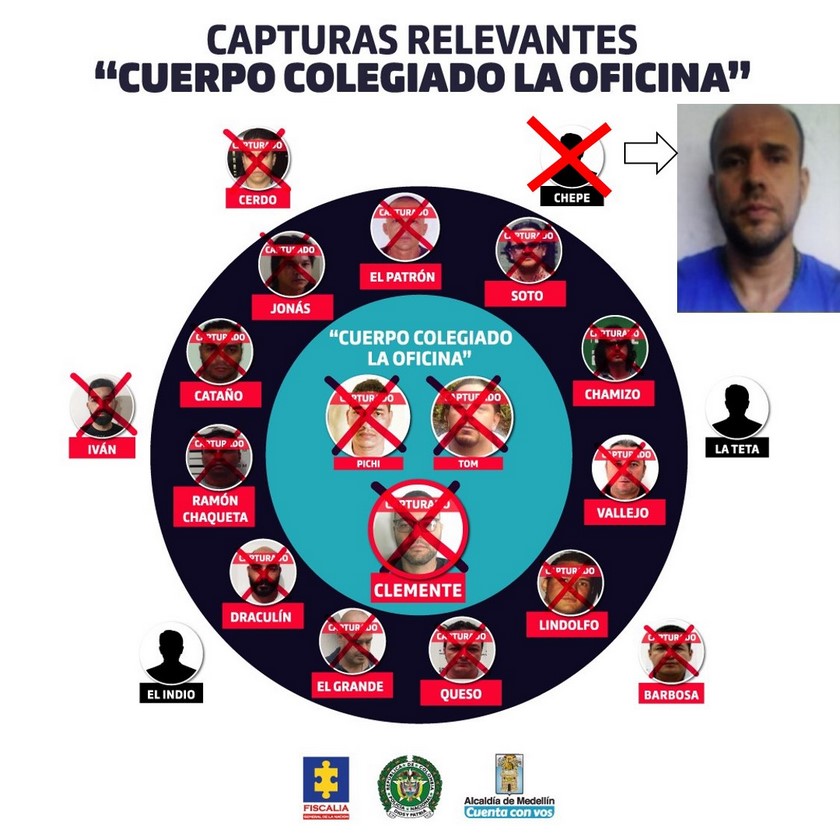 Miembros de la Sijín Metropolitana capturaron en el municipio de El Carmen de Viboral, oriente antioqueño, a Josué Fabio Osorio Osorio alias “Chepe” presunto cabecilla de “La Oficina”.