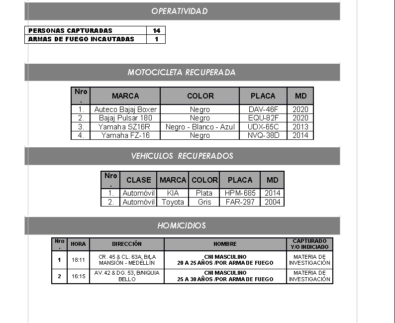 La Policía Metropolitana del Valle de Aburrá dio a conocer el listado de vehículos y motos recuperados en las últimas horas en el Área Metropolitana del Valle de Aburrá.