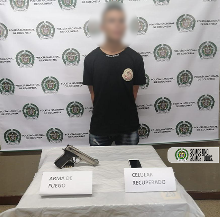 La Policía Metropolitana del Valle de Aburrá, capturó a un hombre quien había robado a una persona un celular con un arma de fuego.