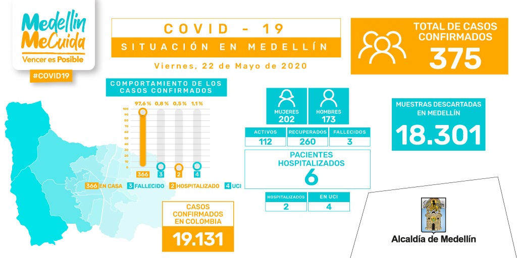 La Alcaldía de Medellín informó que ya son 375 personas contagiadas por Covid-19 en lo corrido de la pandemia en la ciudad.
