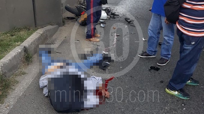 Según informaron seguidores de Minuto30.com, el motociclista estaría por el carril derecho, al parecer, para adelantar un camión de carga pesada, pero se habría chocado contra el separador y cayó contra las llantas de vehículo.