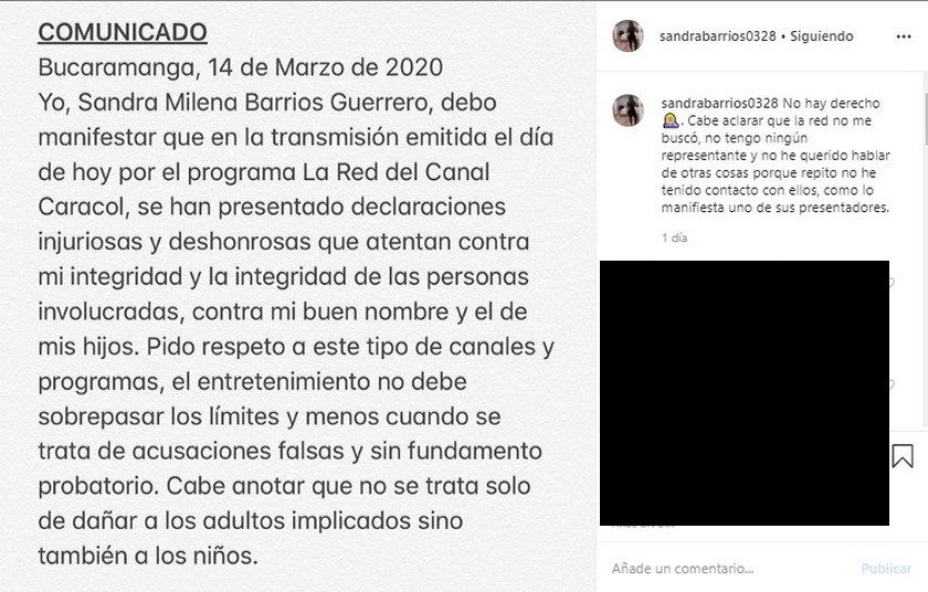 Ante tanto rumor, Sandra decidió publicar una imagen en Instagram con la que dice que todo eso son más que noticias falsas y habló del programa de Caracol, aclaró que ningún periodista la buscó para hablar sobre lo que sacaron el pasado fin de semana por televisión.