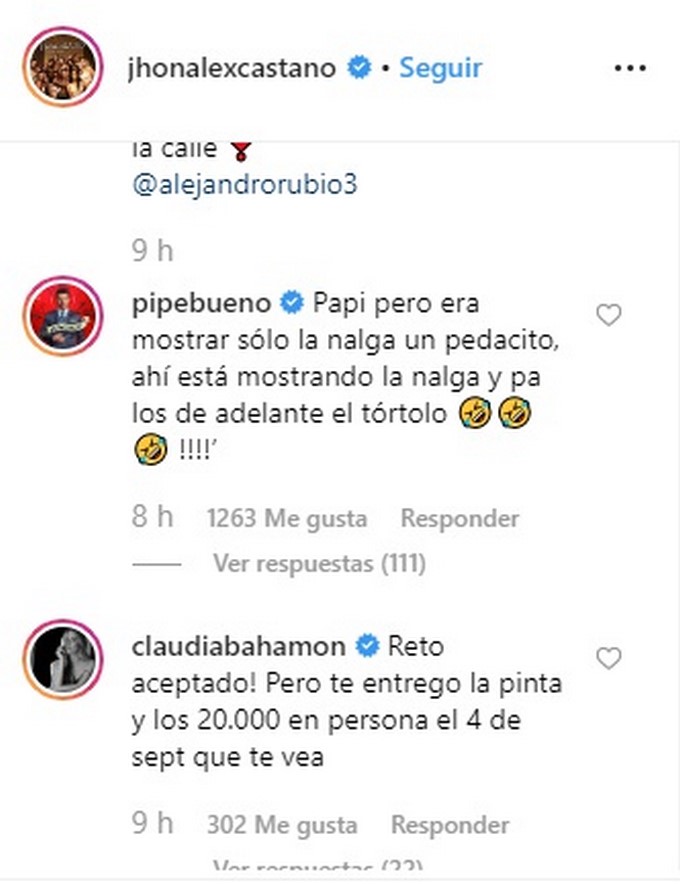 Pibe Bueno no se aguantó y fue uno de los primero en comentar la imagen: “Papi pero era mostrar sólo la nalga un pedacito, ahí está mostrando la nalga y pa los de adelante el tórtolo”(sic).