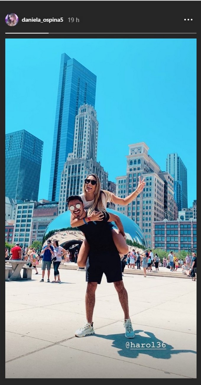 La modelo paisa sorprendió a sus seis millones de seguidores con una foto mientras disfruta con su novio de unas vacaciones en Chicago. La foto fue publicada por medio de sus estados de Instagram, se muestran felices mientras él carga a Ospina sobre su espalda dejando ver el monumento más representativo de la ciudad de Chicago, la Cloud Gate.