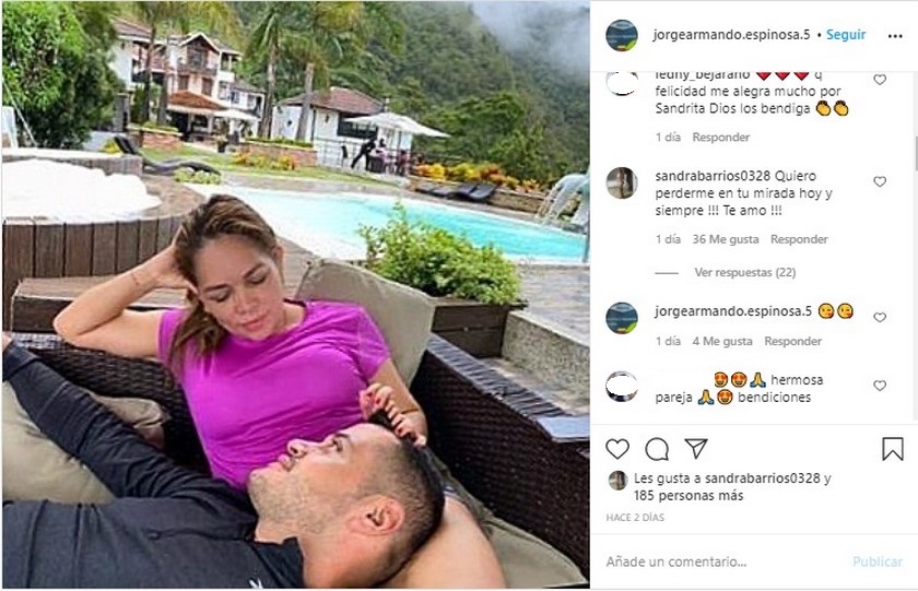 “Quiero perderme en tu mirada hoy y siempre ¡Te amo!”, fueron las palabras que le escribió Sandra a Jorge Armando Espinosa, quien sería su nueva pareja.