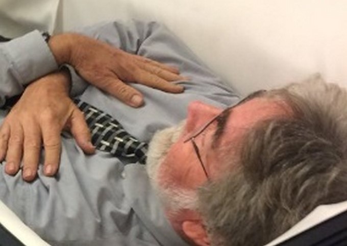 Uno de los alumnos de este docente subió una fotografía con el hombre acostado en un ataúd, como si estuviera muerto.