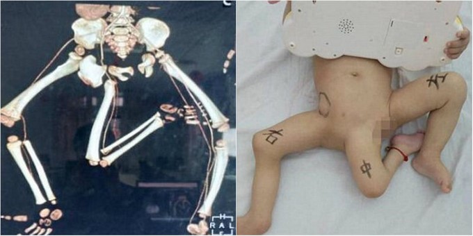 Un bebé de 11 meses de nacido pasó por una cirugía de más de 10 horas para retirar una tercera pierna y una mano que tenía en esta. La mano se encontraba en el lugar de la pierna en donde debía ir el pie.
