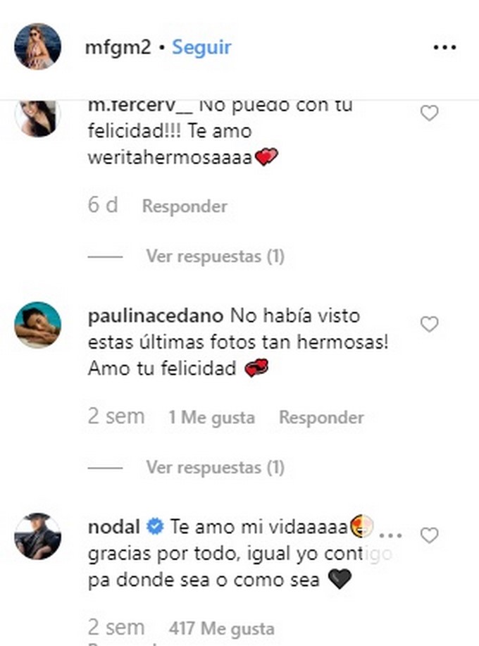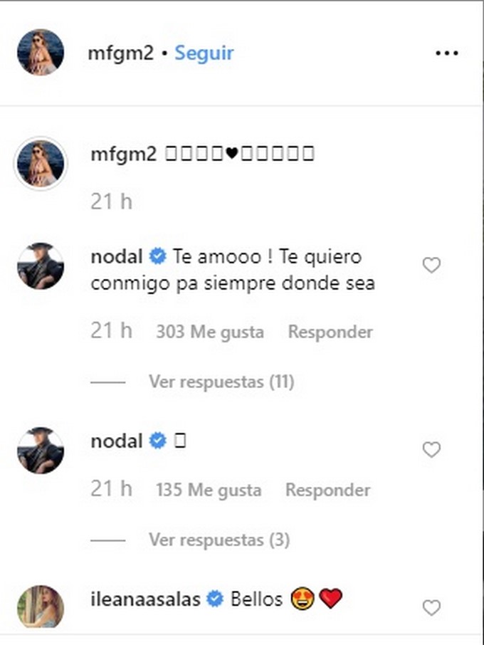 La afortunada, una joven rubia, que se llama María Fernanda Guzmán, quien publicó dos fotos en compañía de Nodal donde se ven igual de acaramelados, aunque no dejaron ver bien su rostro en lo comentario se destaca los mensajes de Nodal.
