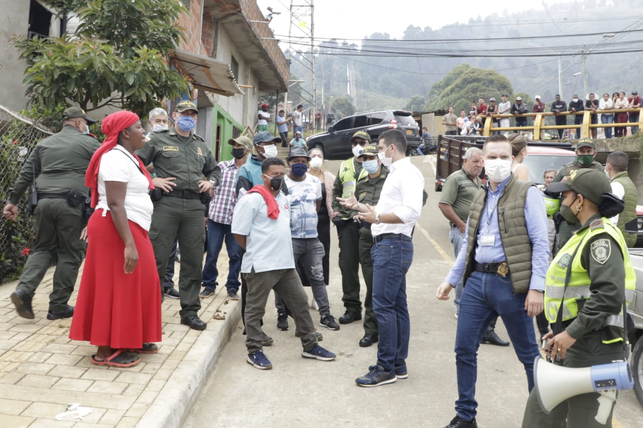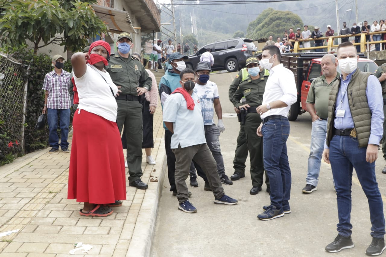 El secretario de Gobierno, Esteban Restrepo, el gerente de Corregimientos, Cristián Sánchez y Natalia Urrego, secretaria de Infraestructura, realizaron un recorrido por las comunas 1, 3 y 7 para atender a la comunidad que se encontraba pidiendo atención prioritaria para recibir alimentación por parte de la Administración Municipal.