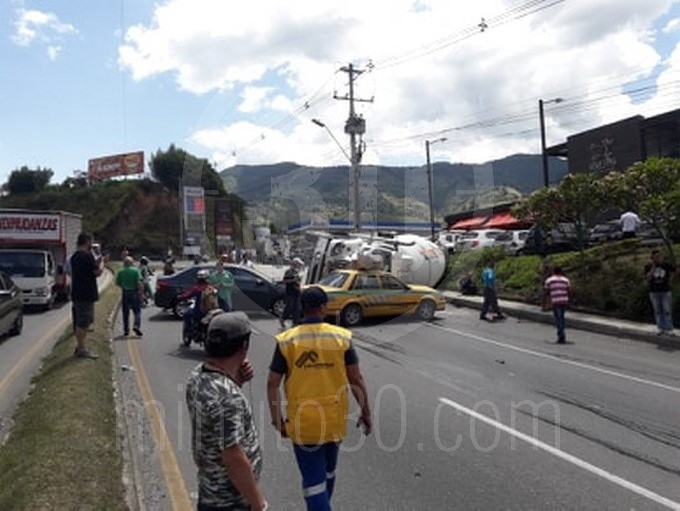 En el accidente resultaron lesionados el conductor del camión y una acompañante del vehículo particular, quienes fueron trasladados al hospital de San Vicente de Paúl del municipio de Caldas.