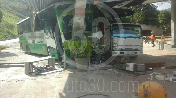 En el incidente también estuvo involucrado un camión que fue impactado por el bus.