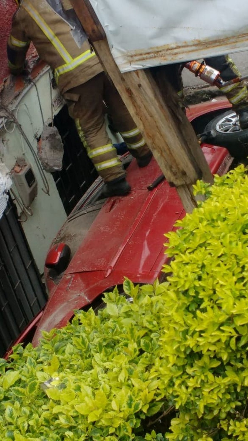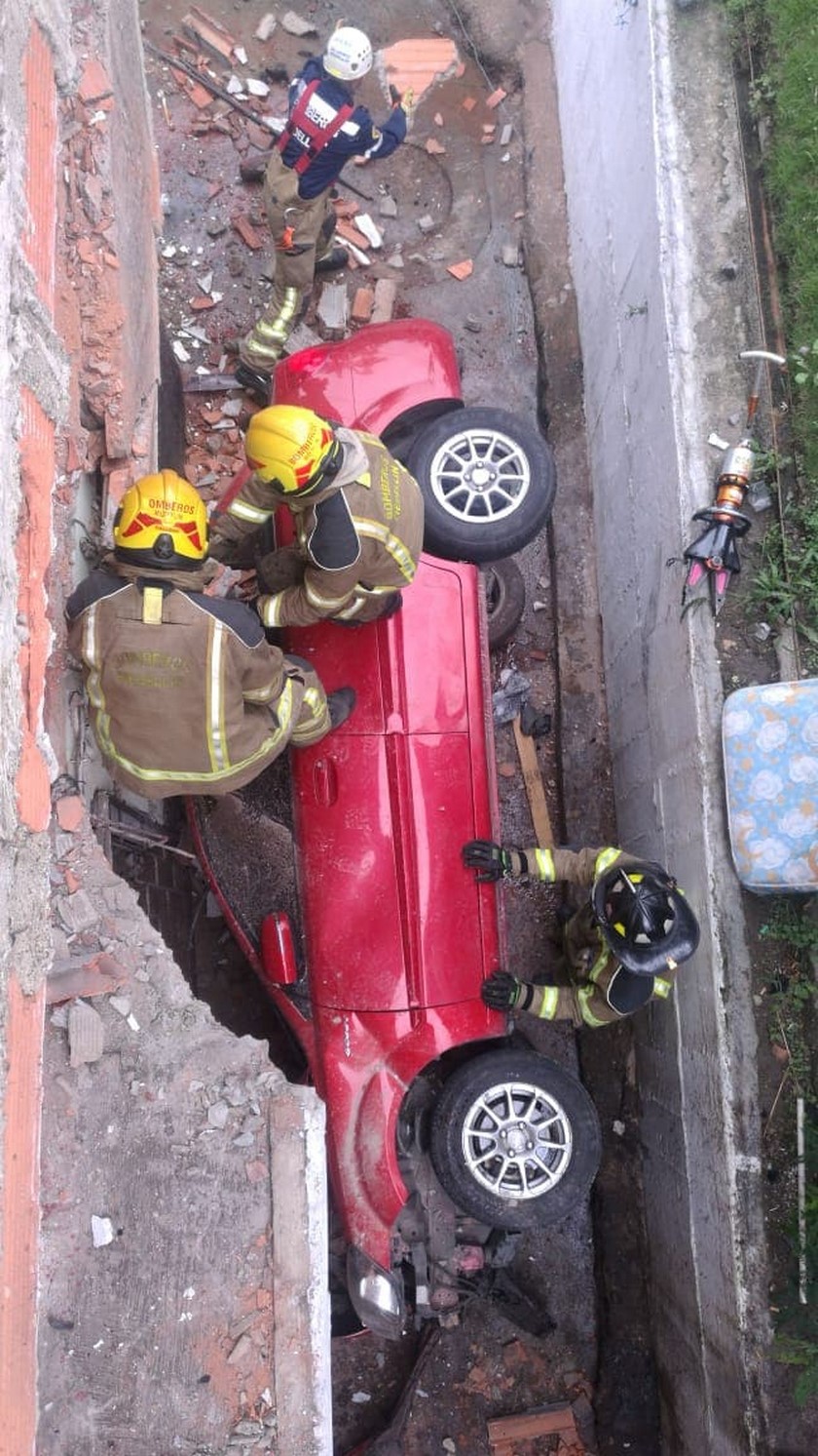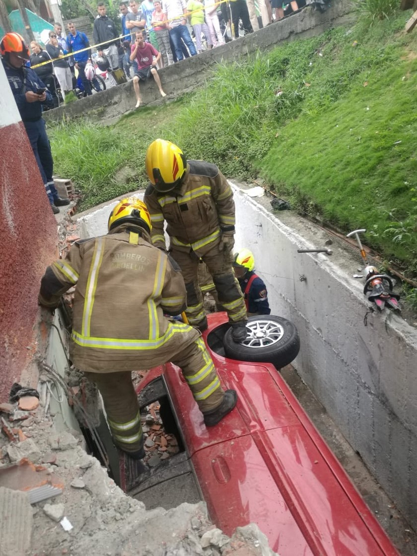 Según información entregada por los testigos del hecho, un vehículo que era conducido por una joven se estrelló contra un bus del Metro de Medellín y tras la colisión se fue a un hueco de una vivienda.