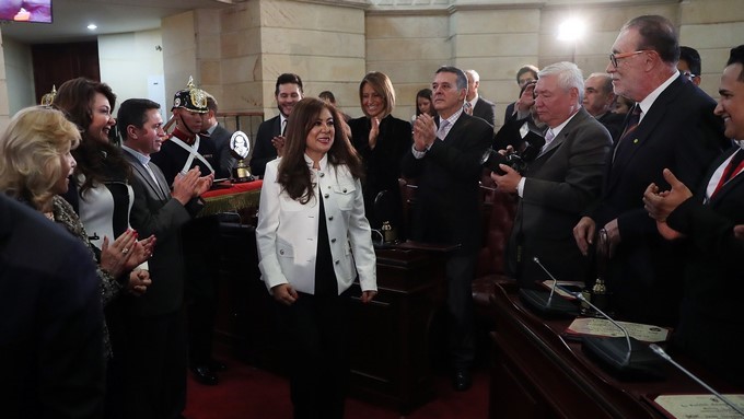 a escritora colombiana Pilar Vélez (c) recibe el Premio Nacional de la Comunicación y el Periodismo Alfonso López Michelsen hoy, jueves 30 de noviembre de 2017, en el Capitolio Nacional en Bogotá (Colombia). EFE