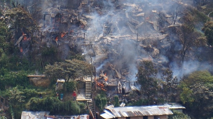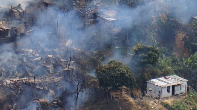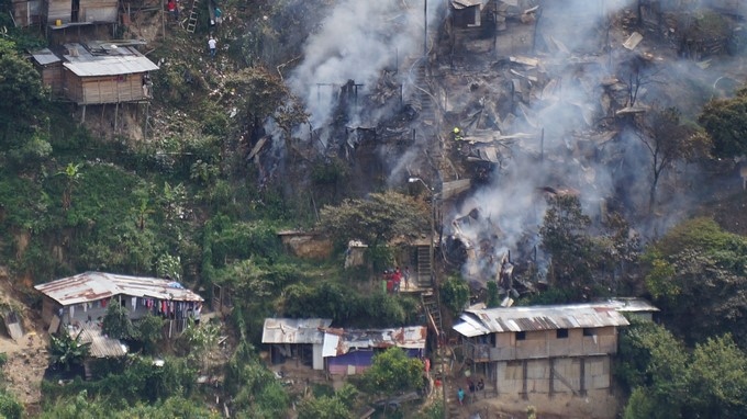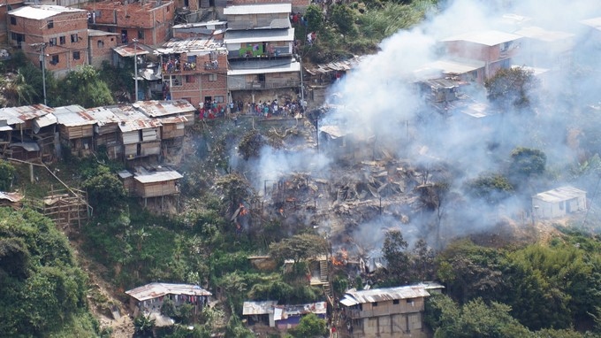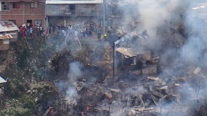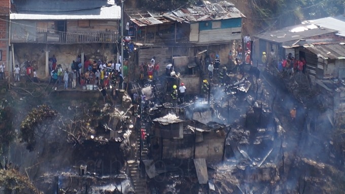 Al menos siete viviendas del barrio Olaya Herrera, al occidente de la ciudad, fueron consumidas por un incendio de grandes proporciones.