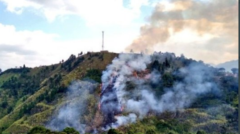 El incendio forestal se encuentra sobre zona boscosa en la vía al Túnel de Occidente.