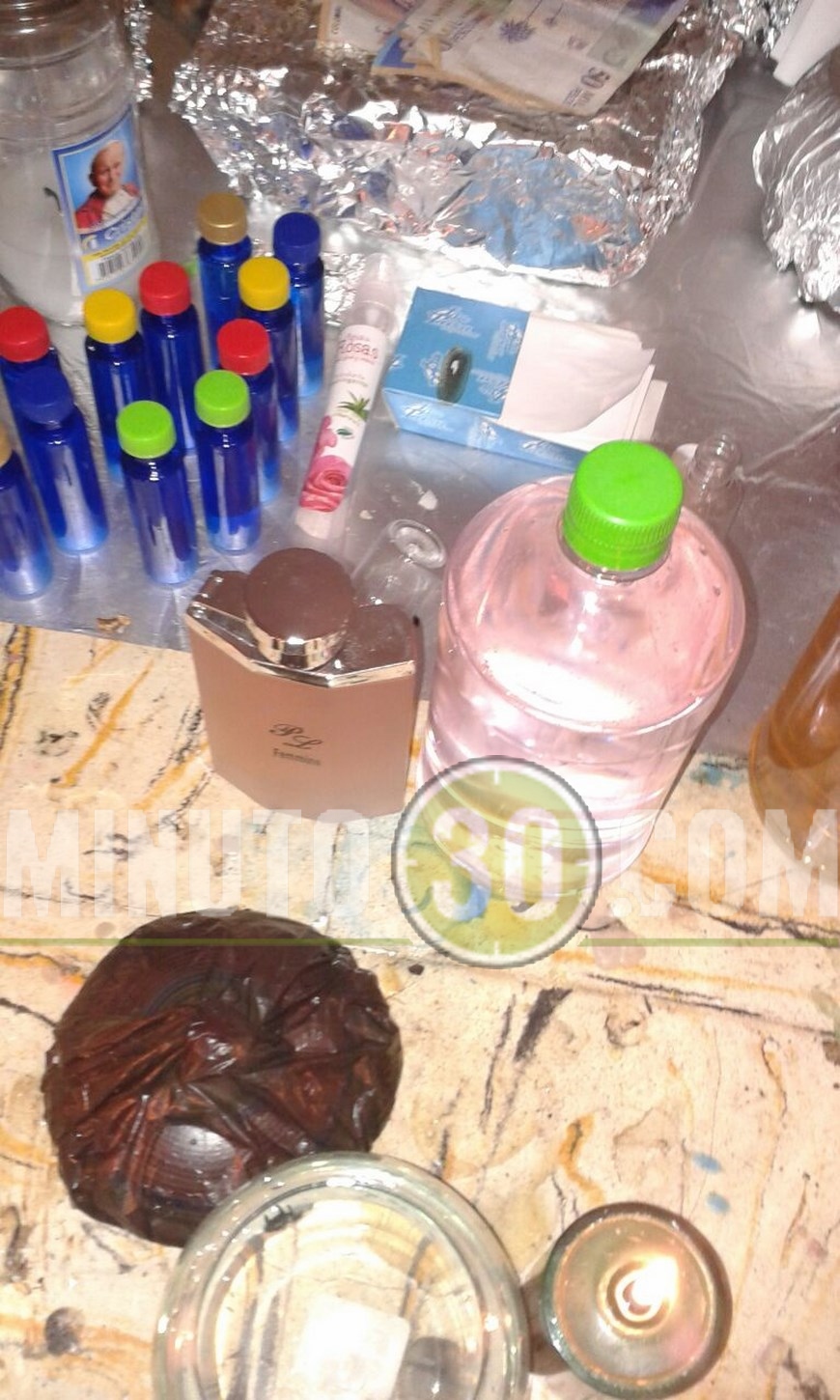 Al indagar al interior de la casa que tenía en arriendo, los propietarios del inmueble encontraron figuras, objetos envueltos en papel de aluminio y vasos con agua, todo puesto en lugares específicos, con los que se suponía adelantaba sus rituales.